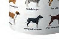 Na kubku znajduje się wiele wizerunków psów: maltańczyk, yorkshire terrier, terier szkocki, jack russell terrier, chihuahua, shih tzu, beagle, sznaucer średni, cocker spaniel, jamnik długowłosy, dalmatyńczyk, doberman, husky syberyjski, bokser, owczarek niemiecki, labrador, rottweiler, golden retriever, seter irlandzki, nowofunland, dog niemiecki, bernardyn i inne.