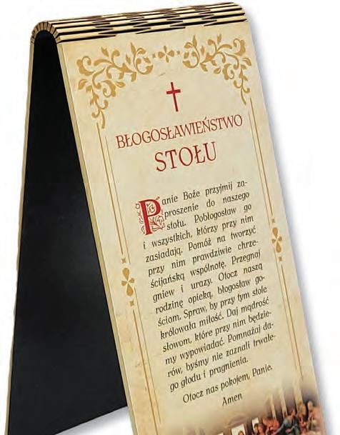Błogosławieństwo na deseczce, dwustronne, stabilne do postawienia na rodzinnym, domowym stole zarówno na co dzień, jak i przy ważnych uroczystościach rodzinnych. Polecamy do każdego domu, a także na upominki dla rodzin, do których wybieramy się w gościnę.