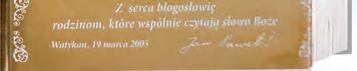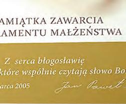 Biblię dla nowożeńców można zamówić w wersji z dedykacją za dopłatą 10 zł. Dane personalne do dedykacji należy zgłosić telefonicznie podczas składania zamówienia lub na stronie internetowej: www.religijna.pl