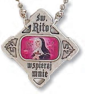 Piękny, okazały medalion (używany również w różańcu św. Rity) wraz z łańcuszkiem. W medalionie zatopiony płatek róży poświęcony na nabożeństwie ku czci świętej, kolorowy wizerunek i inskrypcja „Św. Rito, wspieraj mnie”.
