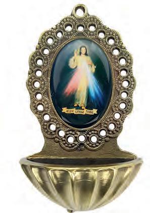 Kropielniczka metalowa z obrazkiem „Jezu ufam Tobie”.