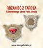 Różaniec przygotowany dla sanktuarium Bożego Miłosierdzia w roku jubileuszu zawierzenia świata Bożemu miłosierdziu, którego dokonał Jan Paweł II w 2002 roku. W łączniku nawiązującym do logo sanktuarium wizerunki ołtarzowe apostołów Bożego miłosierdzia: św. Faustyny i św. Jana Pawła II.