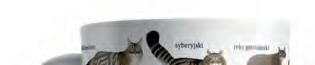 Idealny gadżet dla każdego pasjonata kotów! Na kubku znajdują się koty takie jak: maine coon, norweski leśny, rosyjski niebieski, amerykański krótkowłosy, egipski mau, snowshoe, rex germański, perski, abisyński, japoński bobtail, cejloński, bombajski, syjamski, birmański, singapurski, angora turecka, manx, kartuski, brytyjski, pers i inne.