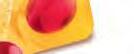 owocowe galaretki w cukrze z malinowym nadzieniem mieszanka smaków: orzeźwiającej cytryny, soczystej pomarańczy, dojrzałej wiśni i słodkiego jabłka z naturalnymi sokami owocowymi z płynnym nadzieniem bogate w witaminę C z naturalną substancją żelującą – pektyną bez konserwantów produkt bezglutenowy