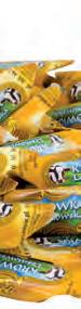 Składniki: cukier, syrop glukozowy, mleko w proszku odtłuszczone, masło (zawiera laktozę), aromat – etylowanilina.