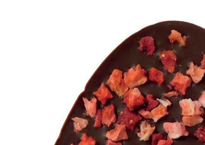Delikatna, wyborna belgijska czekolada rozpływa się w ustach, a kawałki liofilizowanych owoców dodają intensywnego, naturalnego smaku. To wyjątkowa propozycja dla tych, którzy cenią klasykę w nowoczesnym, owocowym wydaniu – doskonała na chwile słodkiej przyjemności.