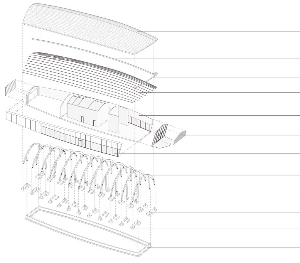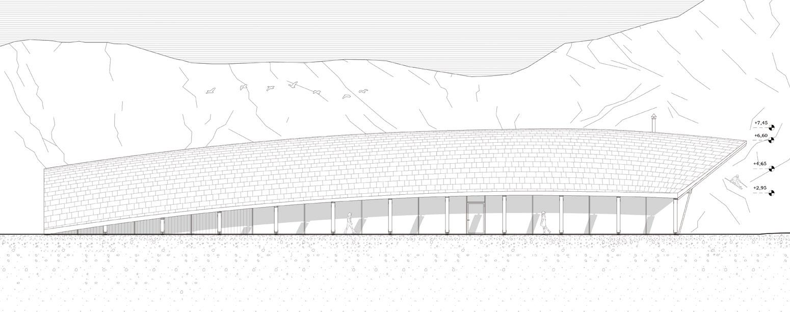 Obiekt pełni rolę miejsca do odpoczynku i regeneracji sił, oferując zaplecze sanitarne, kuchnię, magazynowanie i naprawę sprzętu sportowego oraz przestrzeń do integracji turystów. Przestrzeń wspólna, wyposażona w parametryczną ławkę i komin sprzyja wymianie doświadczeń i budowaniu relacji między odwiedzającymi.