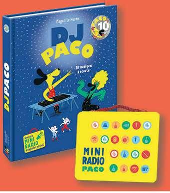Grosse ambiance pour la fête de ton DJ préféré : une histoire à lire et 20 musiques à écouter sur une mini-radio à emporter partout !