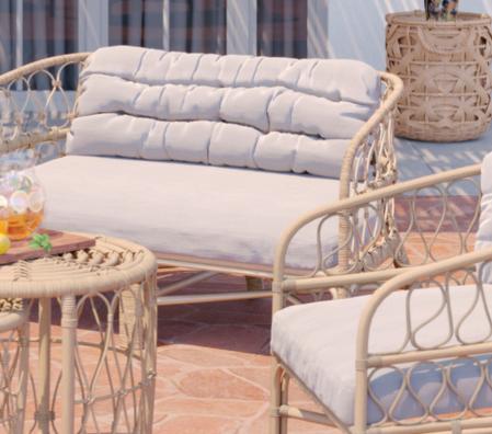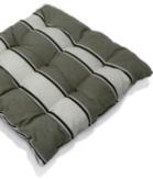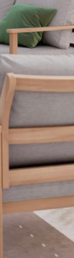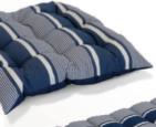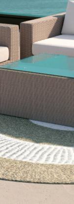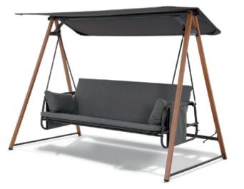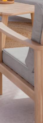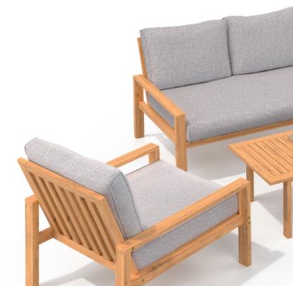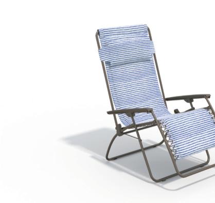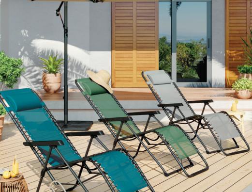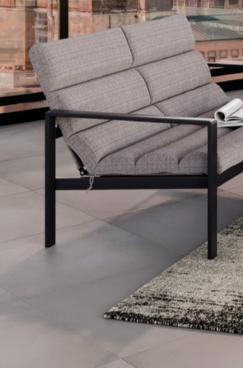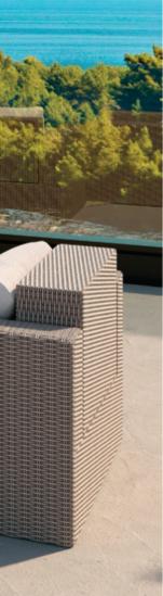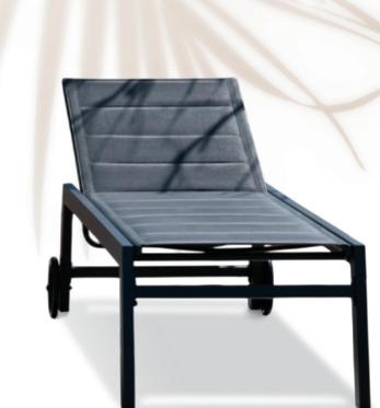 Structure en acier traitée époxy, coussins en polyester Oléfine 200 gr/m2, 12 cm d'épaisseur.