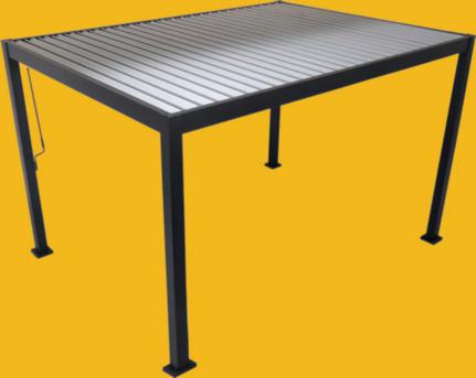 Matières: Structure en aluminium, lames de toit en acier traitée anti-corrosion.