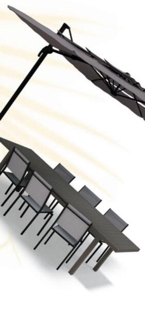 PARASOL EXCENTRÉ 3 TÊTES(2)(3) Mât en aluminium traité époxy, baleines en acier, toile polyester 200 gr/m².