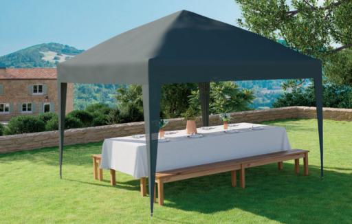 GARANTIE CONSTRUCTEUR 3 ANS(5) Mât et baleines en aluminium. Toile en polyester 250 gr/m². Dim. : L. 394 cm x l. 394 cm x H. 290 cm env.
