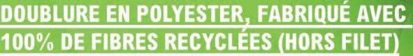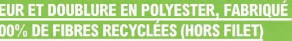 EXTÉRIEUR ET DOUBLURE EN POLYESTER, FABRIQUÉ AVEC 100% DE FIBRES RECYCLÉES (HORS FILET)