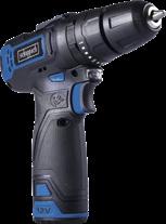 Couple : 45 Nm. 2 vitesses de rotation : 0 - 420 / 0 - 1500 trs/min. Mandrin métallique auto serrant : 13 mm. Capacité de perçage : bois 30 mm, métal 13 mm. Comprend : 1 batterie 2Ah et 1 chargeur.