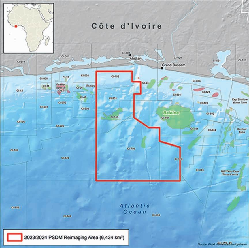 In association with the country’s Direction Générale des Hydrocarbures (DGH) and national oil company, Petroci, the 6400 km2 reimaged seismic data set near the recently discovered Baleine field