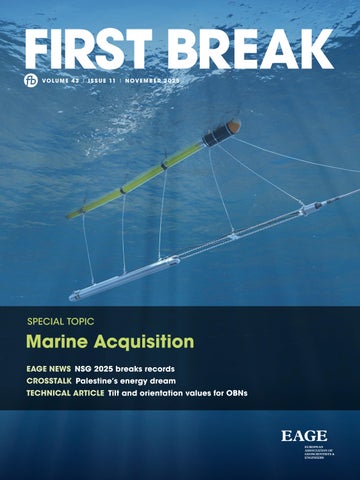 Marine Acquisition EAGE NEWS NSG 2025 breaks records CROSSTALK Palestine’s energy dream TECHNICAL ARTICLE Tilt and orientation values for OBNs