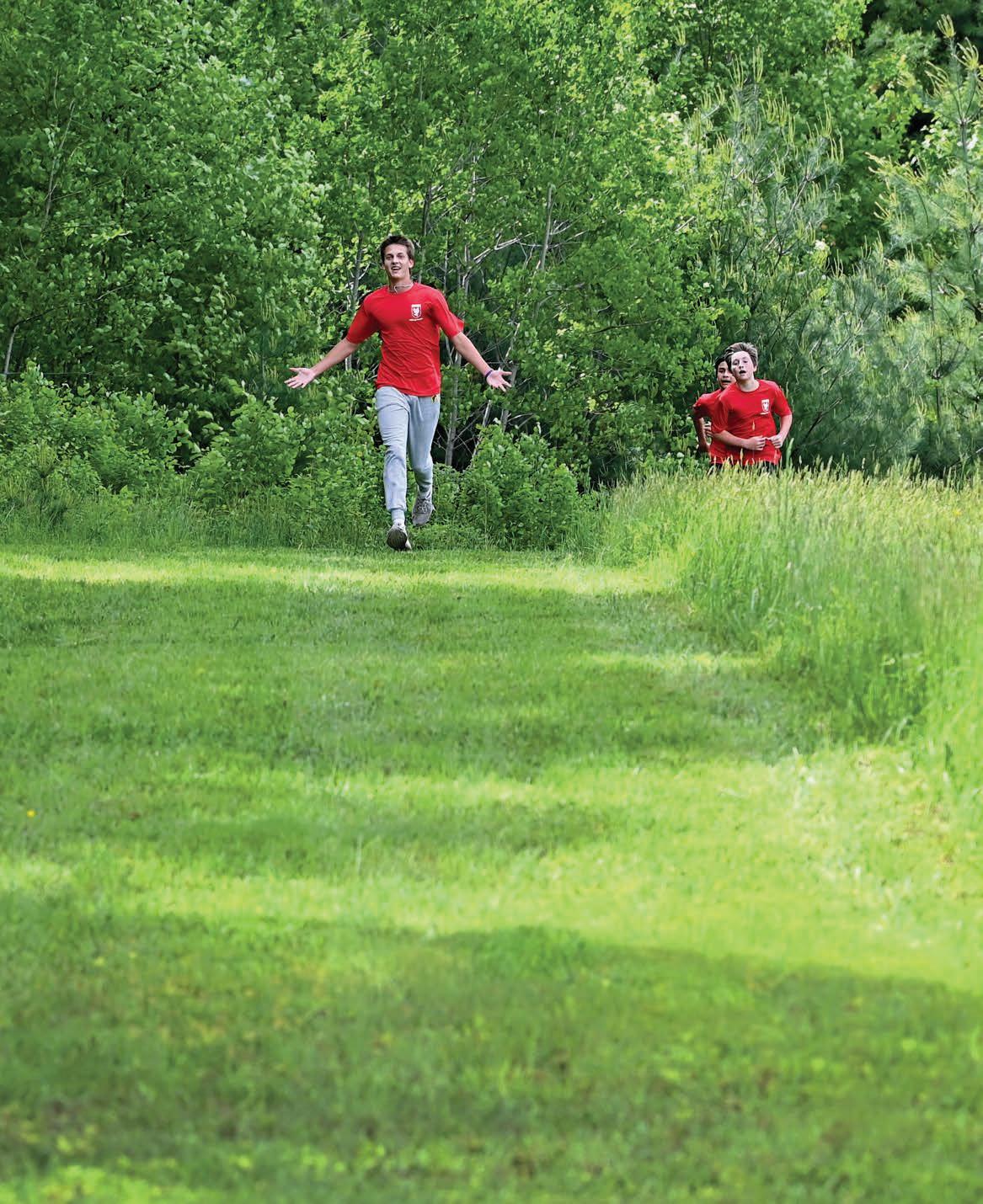 I like to think of a year at Eaglebrook as a tapestry—like the Bayeux—the year’s history stitched into a hundred different scenes: the orchestra in concert—the play cast in rehearsal— a history class’s debate—science students by the pond—a bowl spinning on the potter’s wheel— the Third Form off on a field trip—the band in concert—a football touchdown—a soccer goal—the glow of candles at Candlelighting—the campfire at a wooded campsite—an artist at his easel—canoes on a river—runners on a trail— the greased barrel at Country Fair—the Ad Libs at Fenway Park—a skier weaving through slalom gates—a mountain biker bounding over rocks and roots—a laughing dining room table—a fun-filled Home Night—the tug-o-war at Field Day—the hike up Mount Monadnock . . . and in each scene, children are growing and learning and experiencing the good times of childhood . . . .