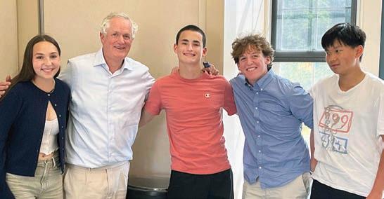 Suffield Academy students, Whitney Bedell, Edward Yates, Mojo MacMillan, and Tim Chen, with Head of School Andrew Chase.