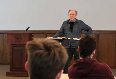 In Jessica Geary’s class, students played with what Collins terms a “paradelle:” a complex form that Siena M. ’23 mastered, reading her version to Collins’ obvious surprise and admiration at dinner during his stay on campus.