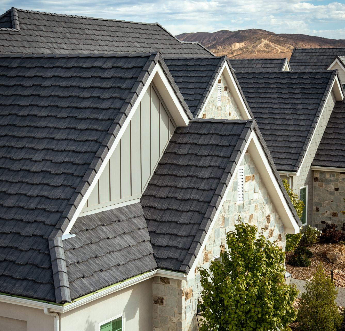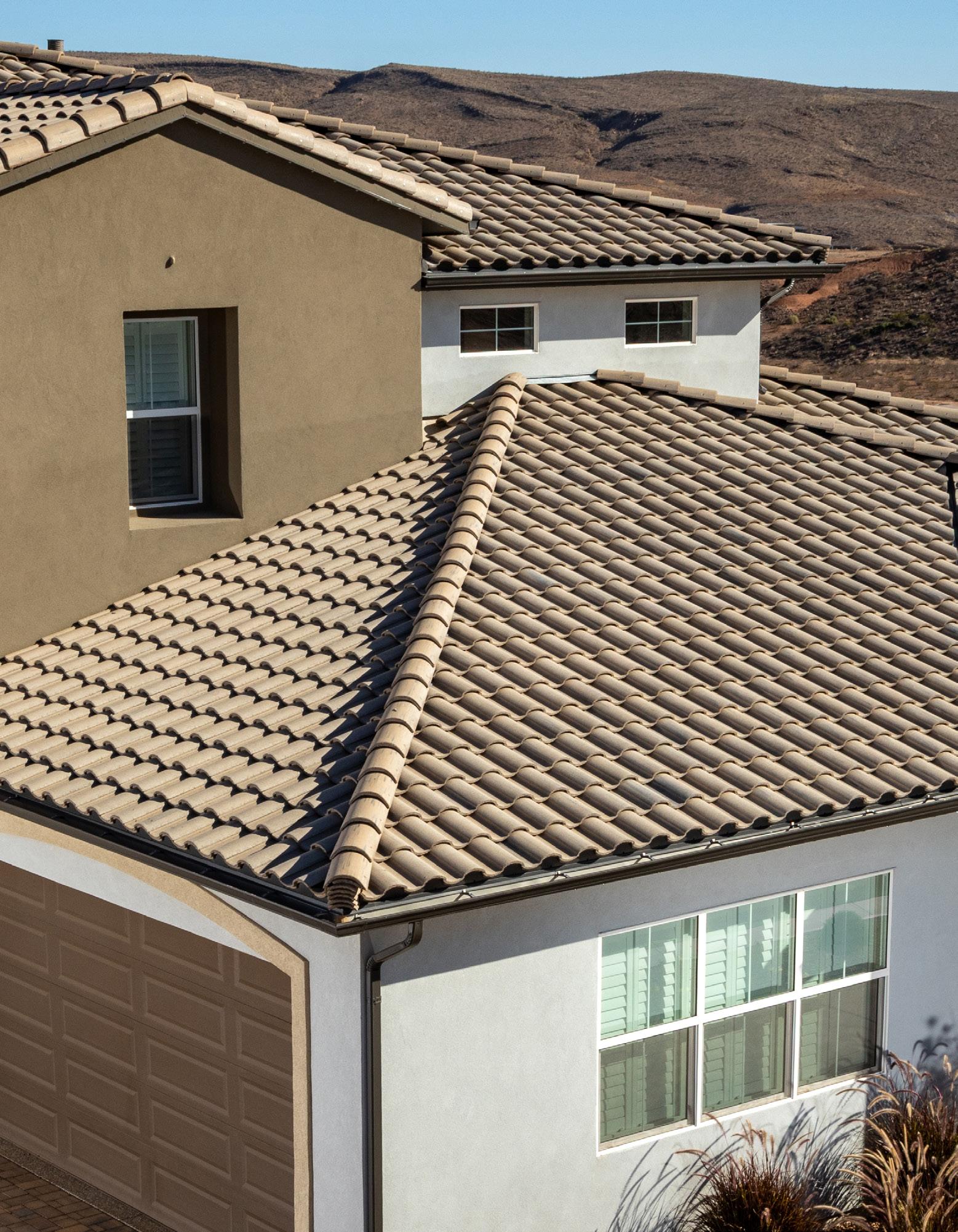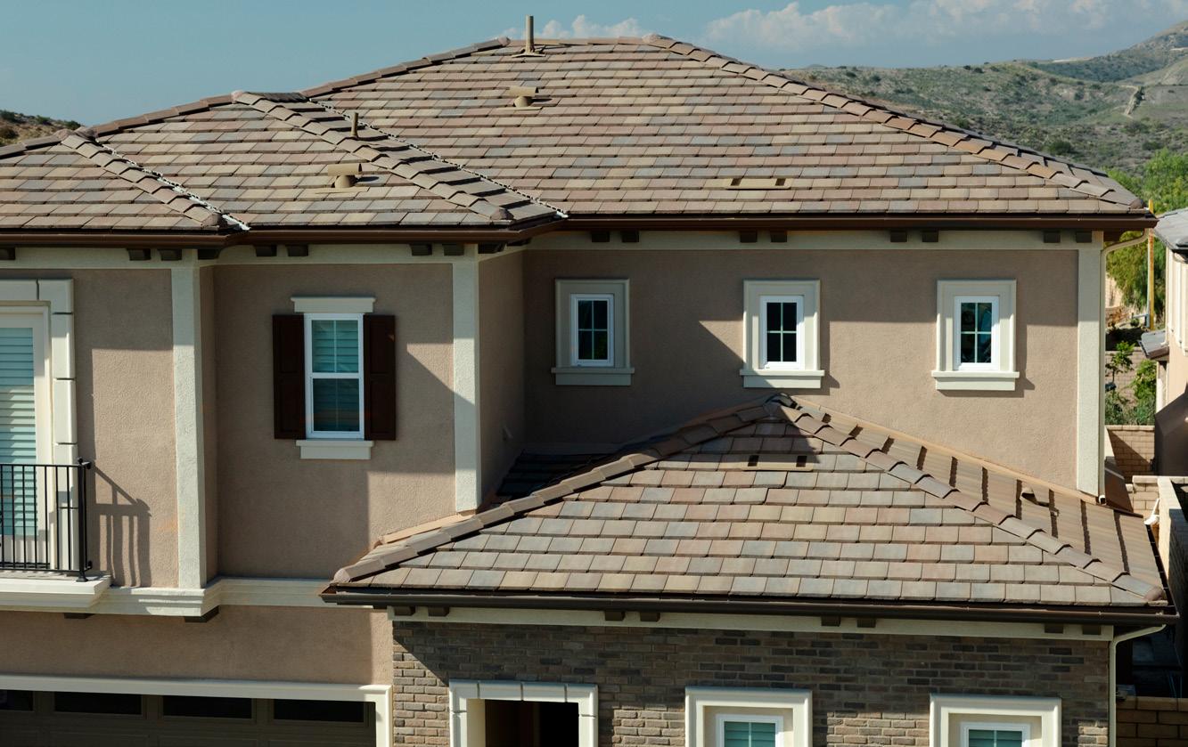 Eagle Roofing Products concrete roof tile is made from natural materials and color variations are to be expected. Every effort has been made to ensure the colors in this brochure are as close to the actual roof tile; however, photographic and printing techniques can alter the printed colors shown, varying it from actual tile colors. In addition,