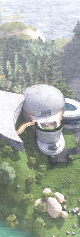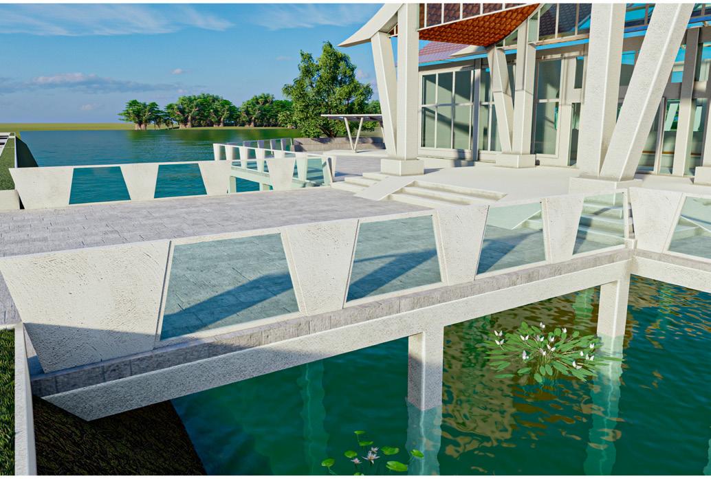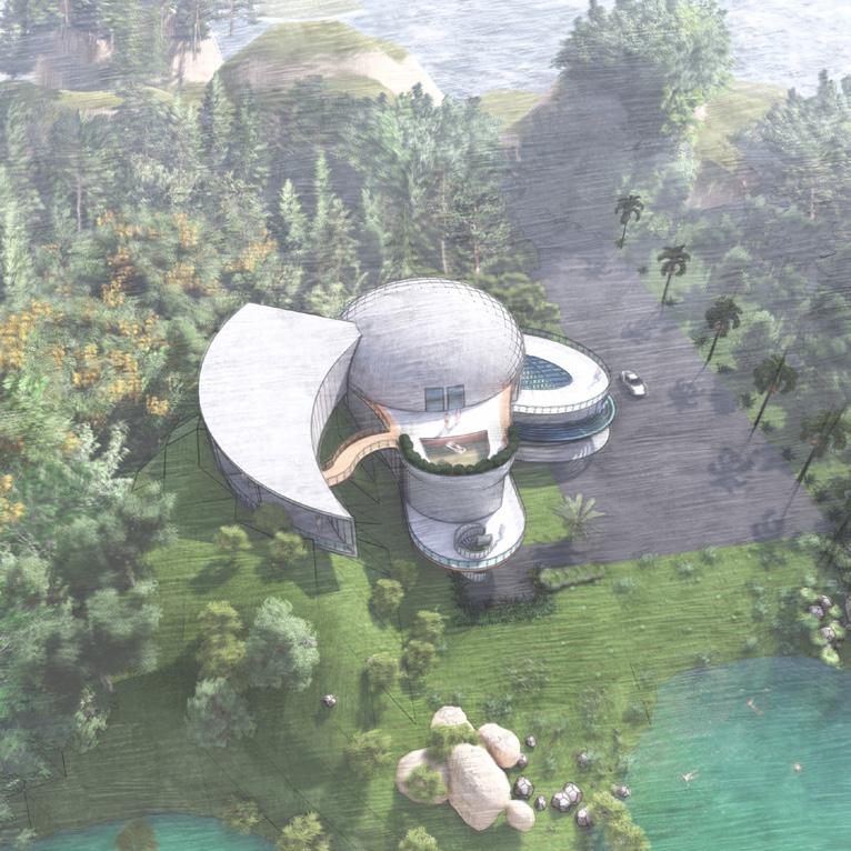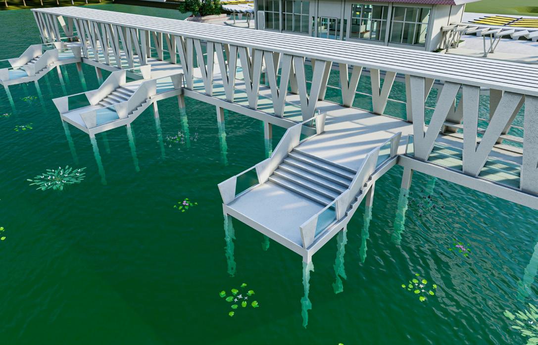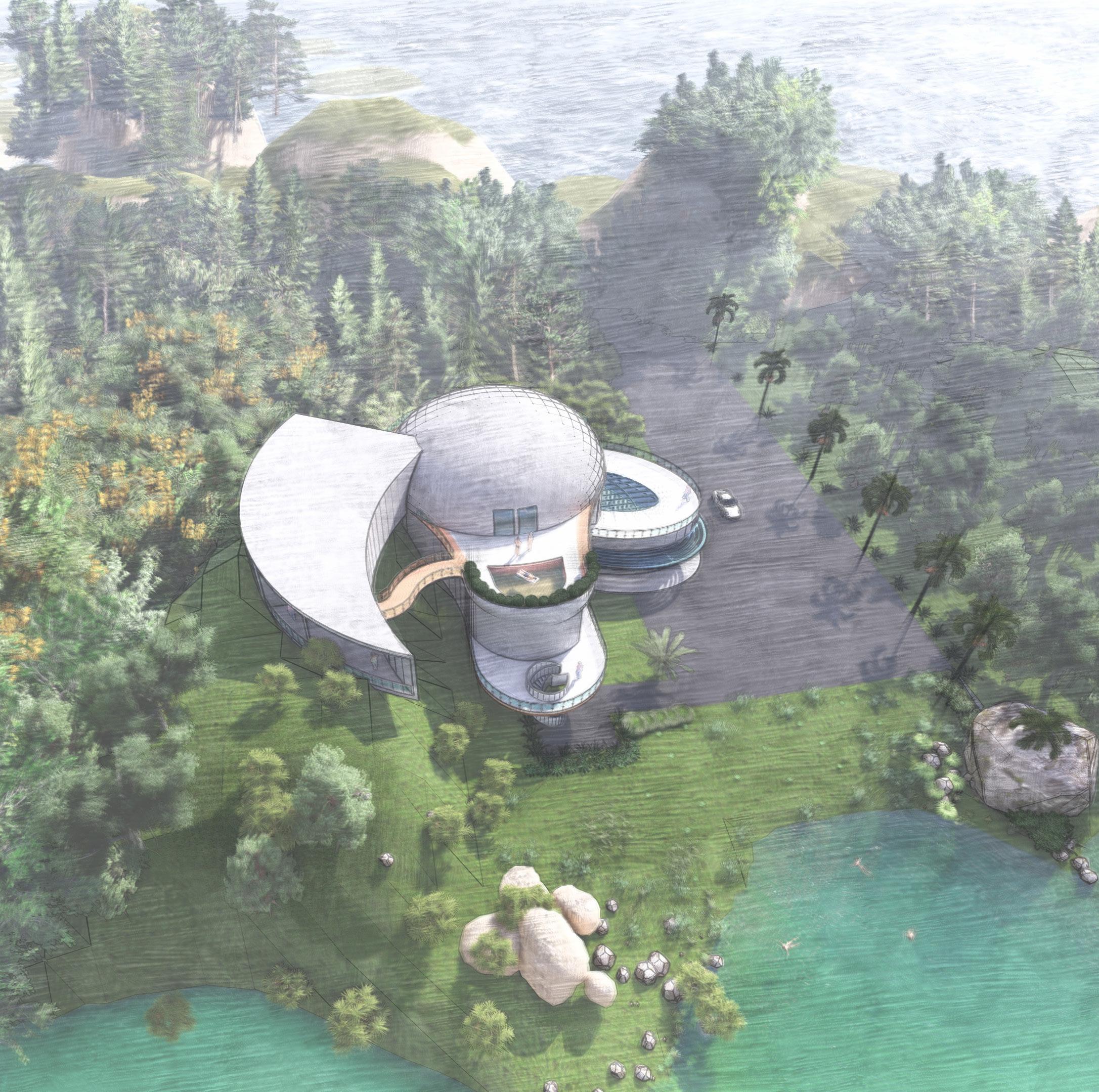 This villa is shaped like a baby’s duck. And I made this villa near the waterfront and in the mountains with the surrounding forest, which makes the residents feel calm, refreshed by the forest and the lake in front of the house. And the house is two stories high and has a curved staircase in front of the house to add style. And for visiting the water.