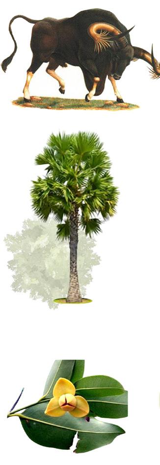 The wild ox is defined as a symbolic animal of the Kingdom of Cambodia (natural heritage) representing mammals. It belongs to the endangered species group. Wild oxen have been banned from hunting since before the war in the 1960s.