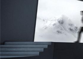 A video of snow-capped mountains is shown on the screen. The audience place their hands on the screen and the snow melts as the temperature is sensed to rise.
