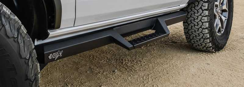11 GRATE STEPS RUNNING BOARDS 21-22 FORD BRONCO 2DR Sale price PN: WES27-74705 4” PRO TRAXX POLISHED OVAL TUBE STEP BARS 21-22 FORD BRONCO 2DR Sale price PN: WES21-24180 4” PRO TRAXX BLACK OVAL TUBE STEP BARS 21-22 FORD BRONCO 2DR Sale price PN: WES21-24185 VERTEX V3 SIDE BAR KIT 17-22 FORD F-150 RAPTOR Sale price PN: GORV3415587T GO RHINO RB10 SLIM HITCH STEP UNIVERSAL Sale price PN: GORRB610SPC BRACKETS FOR VERTEX V3 21-22 FORD BRONCO Sale price PN: GOR6941296 HDX BLACK DROP NERF STEP BARS 21-22 FORD BRONCO 2DR Sale price PN: WES56-14185 HDX STAINLESS DROP NERF STEP BARS 21-22 FORD BRONCO 4DR Sale price PN: WES56-141952 EXTERIOR PRODUCTS NOTCHED BAR DESIGN WHICH ALLOWS FOR MORE THAN 2” OF ADDITIONAL TOE/HEEL PLACEMENT OVER ITS COMPETITORS