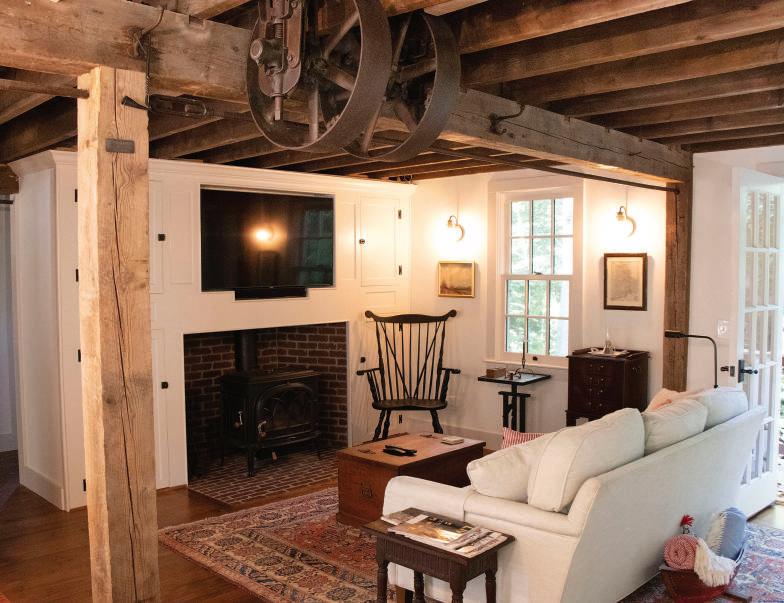 But while their home has all the conveniences of modern living — a spacious kitchen with an island, a large recessed TV over the fireplace, even an electric dumb waiter to haul firewood from the basement — it still harkens back to the past with many reminders that the building used to be known as the Glen Farm Millhouse.