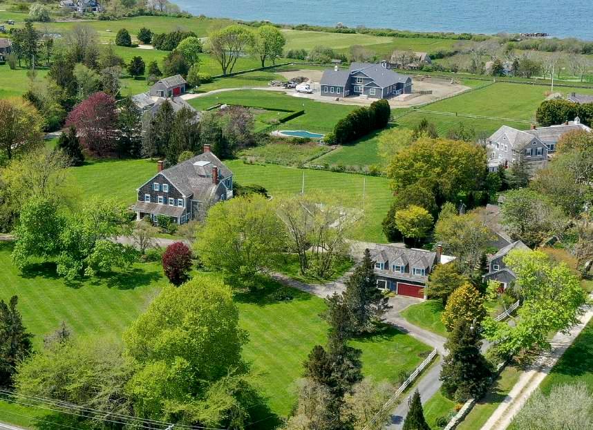Shingle-style residential compound on 5.9 acres with gunite pool. Property is comprised of three lots and four principal buildings, including a guest cottage and two barns.