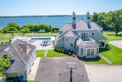 Magnificent oceanfront compound with deep-water dock offers commanding views of Buzzards Bay and Islands beyond. Turn-of-the-century main residence, Gunite pool and spa, bluestone terraces, pool house with living area and bunk room, as well as “carriage house” with gym, family room, kitchenette perfect for overflow guests, Contact Will Milbury 508.525.5200