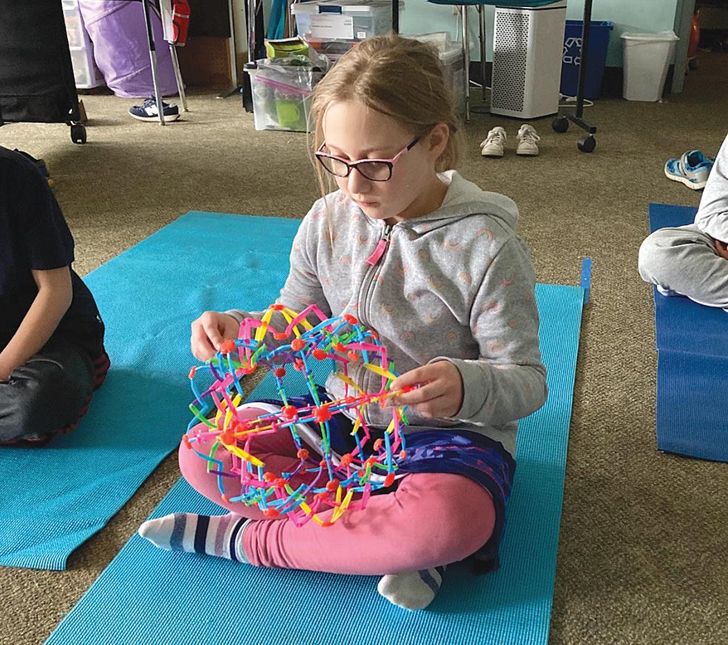 From Page 3 learning, for “relationship-building,” according Mullaney. In the lower grades, a teacher might simply take the students outside to run around if they have pentup energy. They might use the time to read together, or read with the school’s new therapy dog, Denver.
