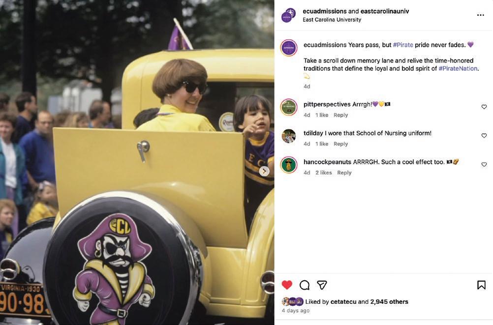 Alumni are essential partners. Sharing success stories helps us recruit students, mentoring builds career pathways and philanthropy fills critical gaps. ECU has always thrived because of its community spirit, and now is the time for Pirates everywhere to lean in. ECU’s academic brand is on the rise, our programs have a high return on investment, and we are an R1 institution with a focus on improving the lives of our citizens and advancing our communities.