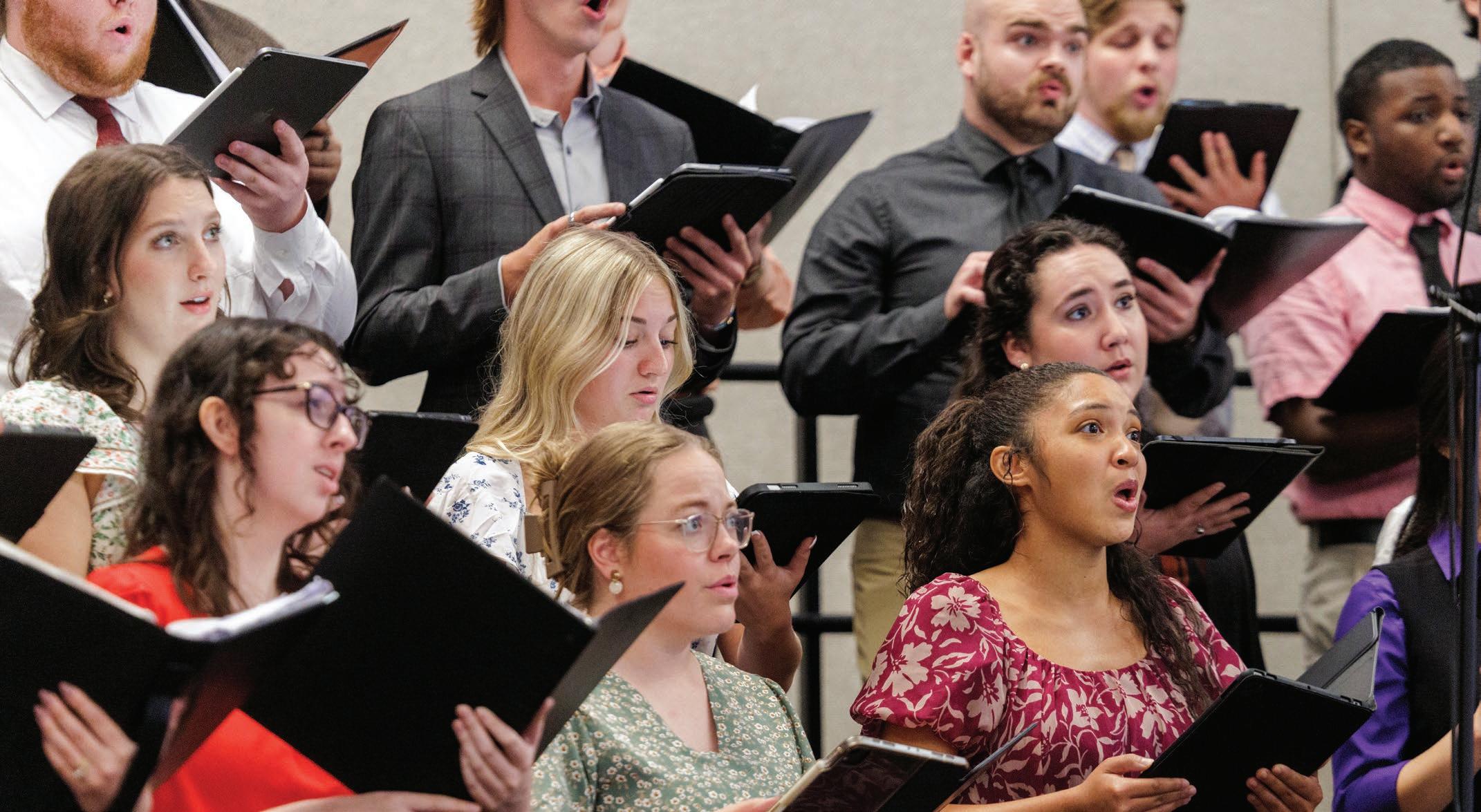The ECU Chamber Singers perform at the annual University Day on Sept. 4. The award-winning group was fresh off its summer performance at the International Chamber Choir Competition Marktoberdorf in Germany, where they earned third place for mixed choirs. The group is about 30 singers strong, mostly music majors. During the June 6-10 festival and competition, they performed pieces in two rounds of competition and in multiple concerts with other choirs from Latvia, Indonesia, Mexico and elsewhere. (Photo by Steven Mantilla)