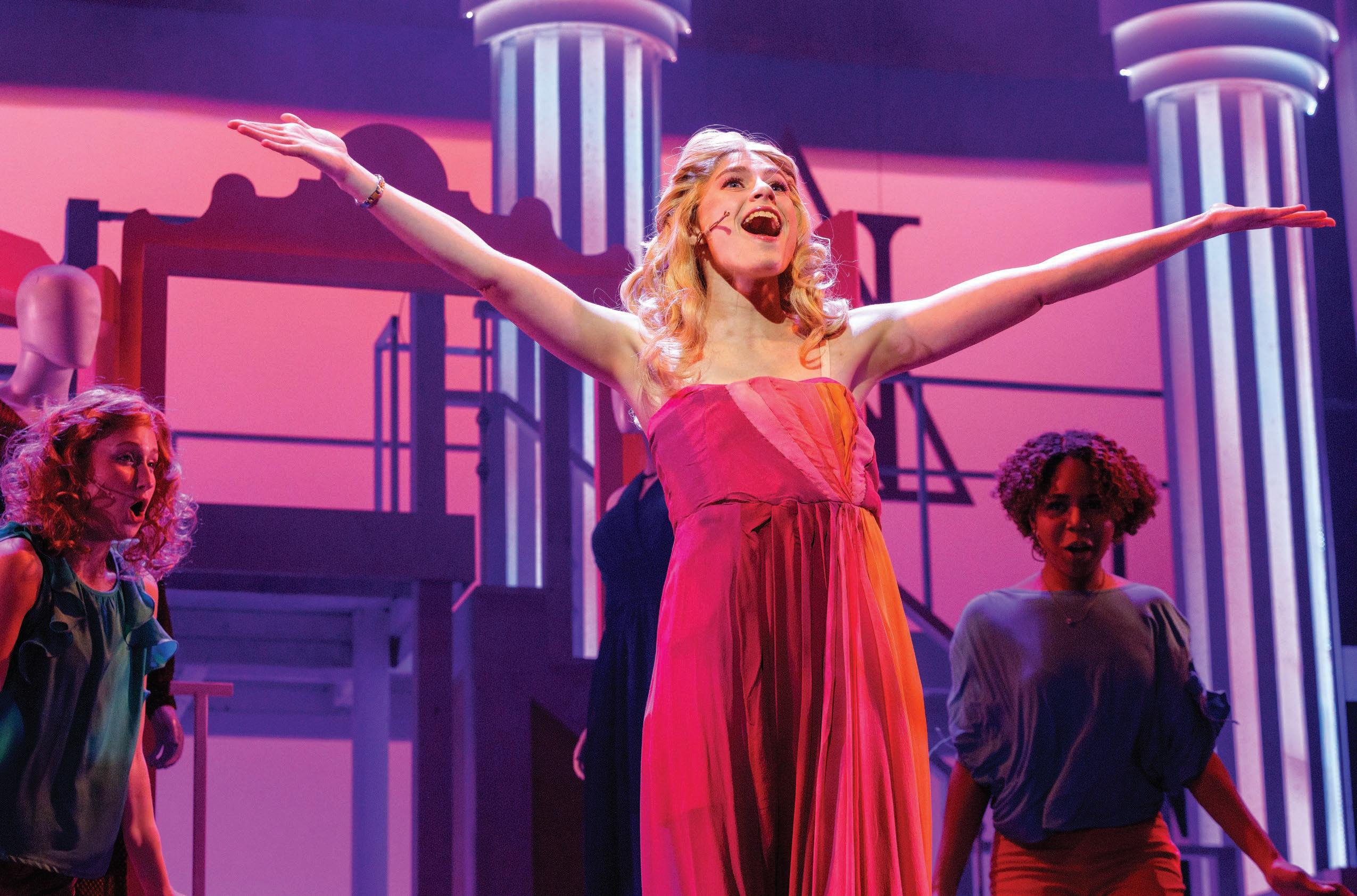 From left to right, musical theatre major Carlie Shaner, musical theatre and educational theatre major Renee Maher and musical theatre major Naya Baker perform during a Nov 17 dress rehearsal for Legally Blonde: The Musical The show went on Nov 19-23 in McGinnis Theatre (Photo by Steven Mantilla)