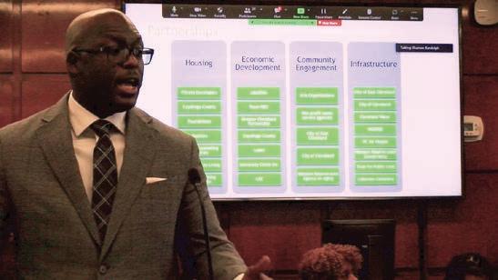 Speech given by Sheila Hunt-Sharpley: “I came across a 2020 Scene Magazine article written by East Cleveland’s own Tyisha Blade. The article is about Tucker’s Casino celebrating its 40th year in operation. In the article, she interviewed Truman and spoke about the negative changes that had taken place in the city. He admitted to positive change on the horizon but stated that “I might not be here to witness all the results, but I think it is on a comeback.” No truer words were ever spoken because the city is on the comeback.
