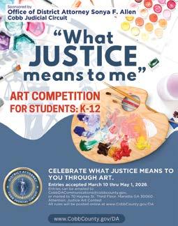 The pursuit of justice is at the heart of every strong and thriving community. It shapes how we treat one another, how we uphold fairness, and how we respond to wrongdoing. The Office of Cobb District Attorney Sonya F. Allen is proud to present the “What Justice Means to Me” Art Contest—an opportunity for students in kindergarten through 12th grade to explore, express, and reflect on the meaning of justice through creativity.