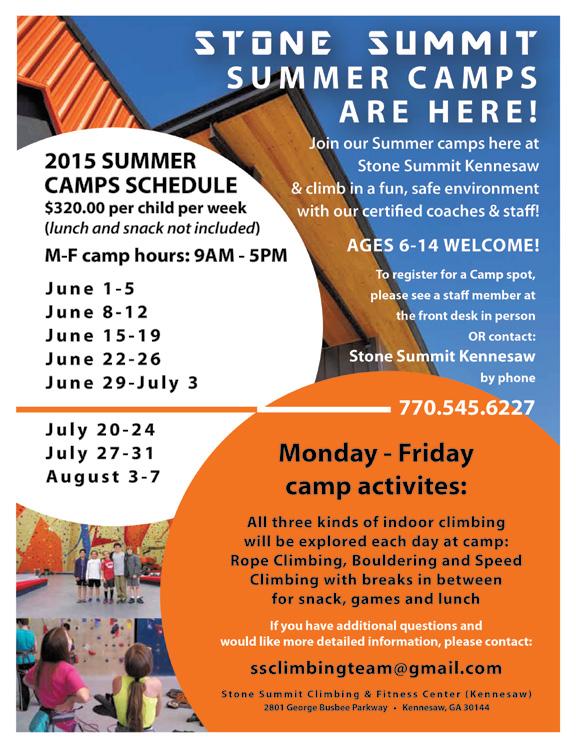 STONE SUMMIT SUMMER CAMP 2801 George Busbee Parkway, Kennesaw 30144 770-545-6227 • www.ssclimbingteam.com