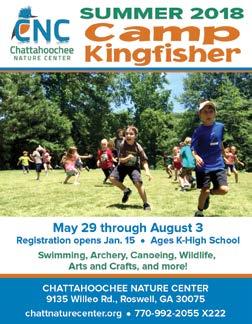 Camp Kingfisher-Chattahoochee Nature Center* 9135 Willeo Road, Roswell 30075 770-992-2055 • www.chattnaturecenter.org/camp-kingfisher