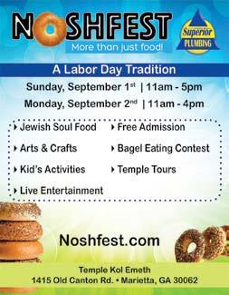 CELEBRATE JEWISH FOOD AND CULTURE AT NOSHFEST Temple Kol Emeth has announced it will host this year’s Noshfest on September 1st and 2nd. The event will be held in the parking lot of Temple Kol Emeth at 1415 Old Canton Road in Marietta/East Cobb.