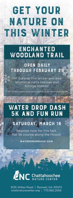 Winter Family Night Hike at the Chattahoochee Nature Center. Winter is one of the best times of year to explore nature at night. The winter world of CNC is one that deserves exploration in the dark. Listen for the sounds of winter in the woods and gaze up at the stars, while enjoying the crisp air of the season. A campfire, where you can roast a marshmallow. Advanced reservations required by the Thursday prior to the event. 7-9pm. $15/ non-members; $12/members. Chattahoochee Nature Center, 9135 Willeo Road, Roswell. More info: www. chattnaturecenter.org.