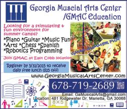 June 7-July 30. 9am-4pm. Ages 5+. Cost: $275-$350. The best comprehensive educational facility at East Cobb, Marietta, Georgia, offers small-group summer camps and private lessons for students from age 5 and up including adults. Summer classes include Music, Fine Arts and Robotics Programming.