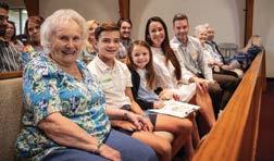 Grace Resurrection’s pews are filled each week, often with three generations. Pictured is 106-year-old Lilian Skarsten Mortimer and her family.