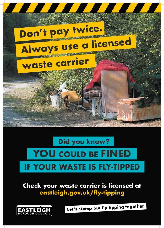 The Council is warning residents to check when hiring a waste carrier that they are licensed by the Environment Agency.