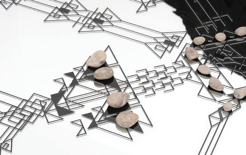 of their collective reflections. Among many topics, their wideranging discussion addresses the potential for AI to preserve and revitalize Indigenous languages and the place of intelligence within Indigenous value systems. Along the same lines, the installation Tȟokátakiya (iglúmaš’ake): In the Future I (2024) by Kite gathered physical and non-physical materials, such as embroidered deer hide, stones, poems, dreams, and scores composed from Lakota language symbols to meditate on the ethics of machine learning, both the destructive processes of extraction needed to sustain these technologies, and the integration of Indigenous ontologies into machine learning datasets.