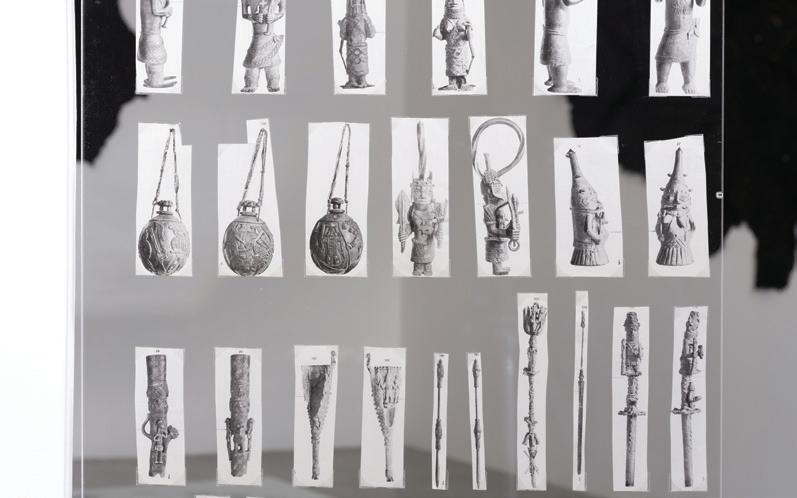 sculpture assembled from earlier prototypes in the Igùn series and positioned atop a transparent pedestal that points to questions of what can or cannot be seen or held.