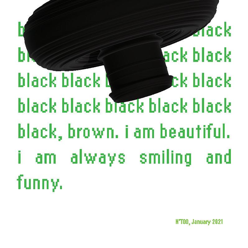 5 When asked what pronouns to describe N’TOO with, Dinkins responded, “She/ her is fine. Though to complicate things I often oscillate between ‘she/ her’ and ‘it.’” Email from Stephanie Dinkins to Talia Heiman, August 31, 2024.