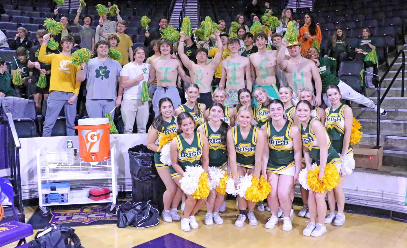 Representing KCHS The Knoxville Catholic High School cheerleaders and an equally enthusiastic group of students supported the Lady Irish at the state-championship game.