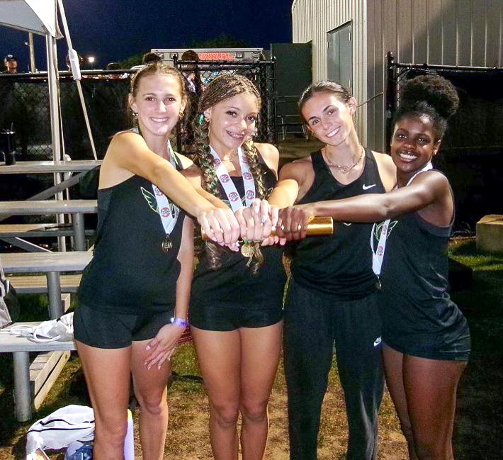 Relay gold The Knoxville Catholic girls 800-meter relay team won the state title with a school-record time of 1:43:28. From left are Payton Sipos, Chloe Truss, Juliet Biden, and Sarah Salsbery.