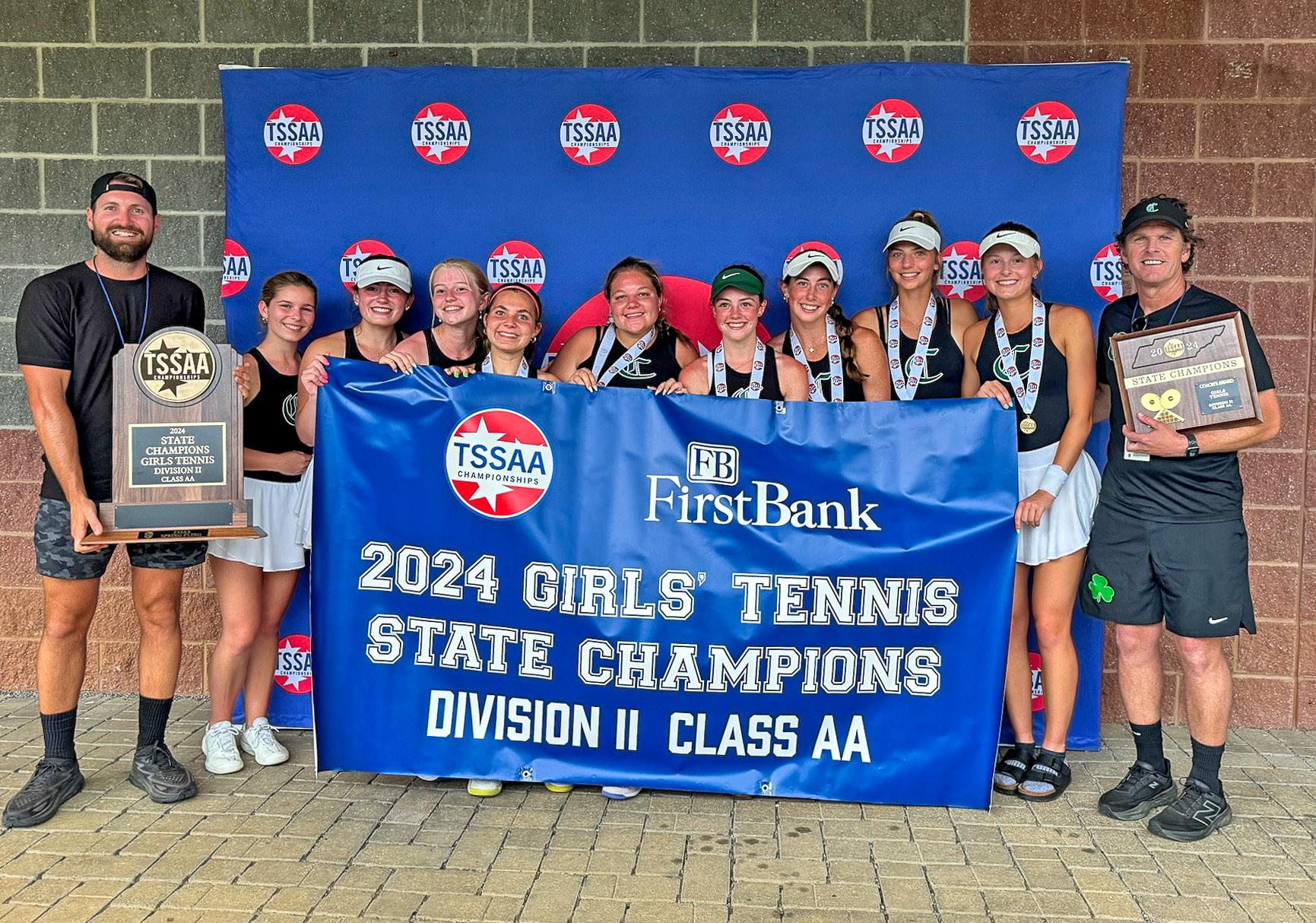 The Lady Irish won the team state title for the fourth straight year and sixth time overall with a 4-3 win over Baylor on May 22. Sophomore Lauren Murphy battled back from the brink of defeat to outlast Molly Donovan in the No. 5 singles match 4-6, 6-4, 7-5 to clinch the championship. Knoxville